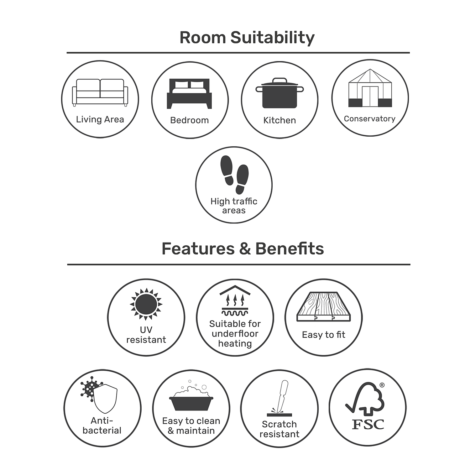 | Rooms Suitable For | Kitchen, living areas, conservatory, high traffic areas |