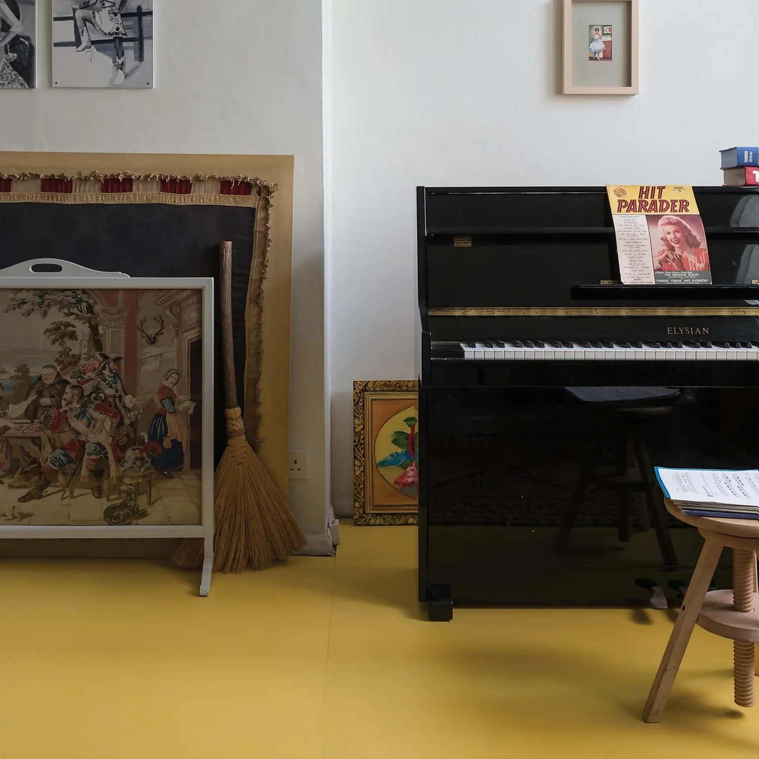 Babouche takes its name from the flat leather slippers that originated in Morocco, often seen in the same cheerful shade of yellow. For a modern twist, pair bright Babouche walls with the blue-black shade Railings on furniture or woodwork.