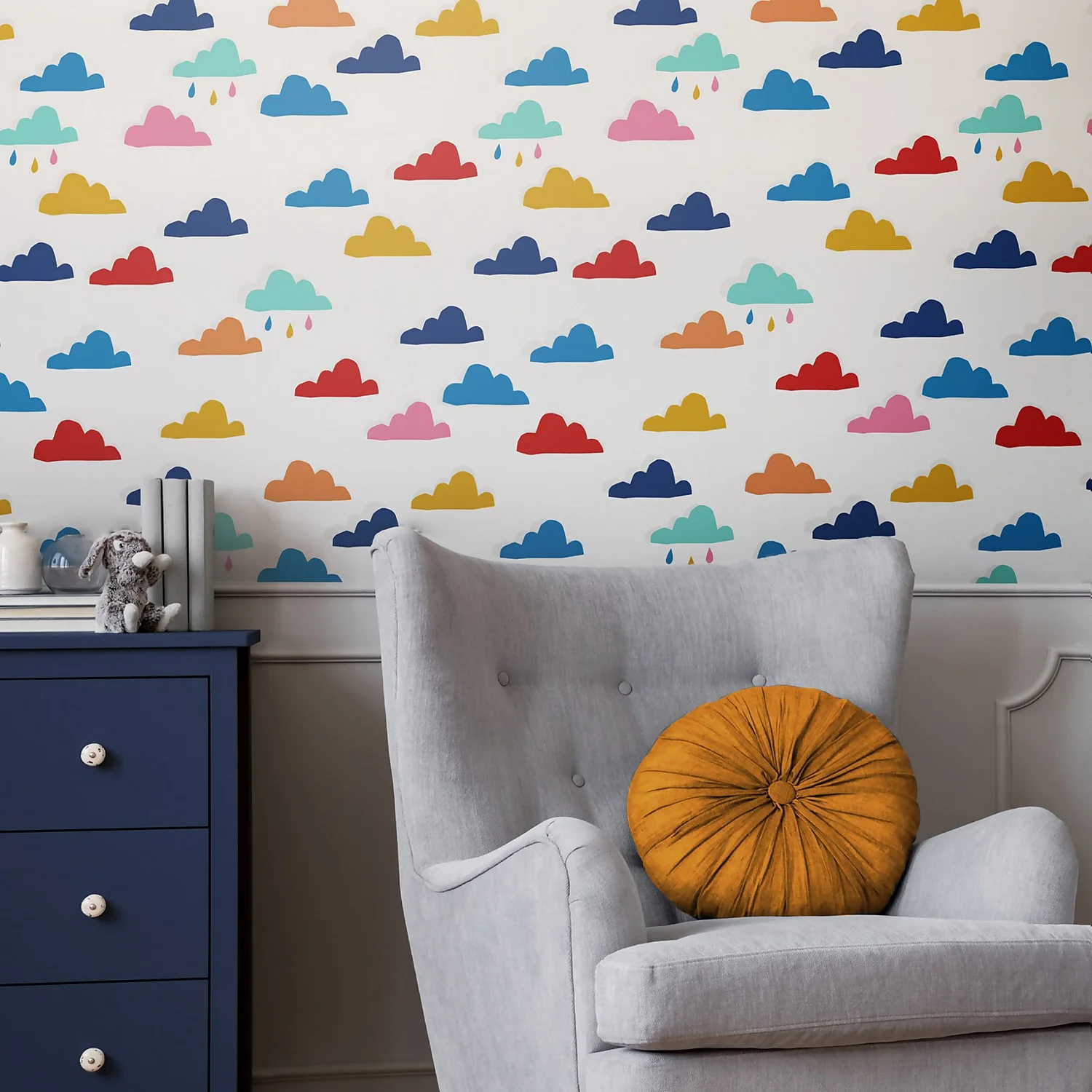 Whatever the weather is a fun, bold and bright wallpaper that is bound to brighten any child’s bedroom or playroom and your mood! An array of charming, rainbow-coloured clouds sit perfectly upon a soft white background in this colourful design. Printed on a matt substrate for a contemporary look and feel. This wallpaper is also paste-the-wall, making is easy to hang.