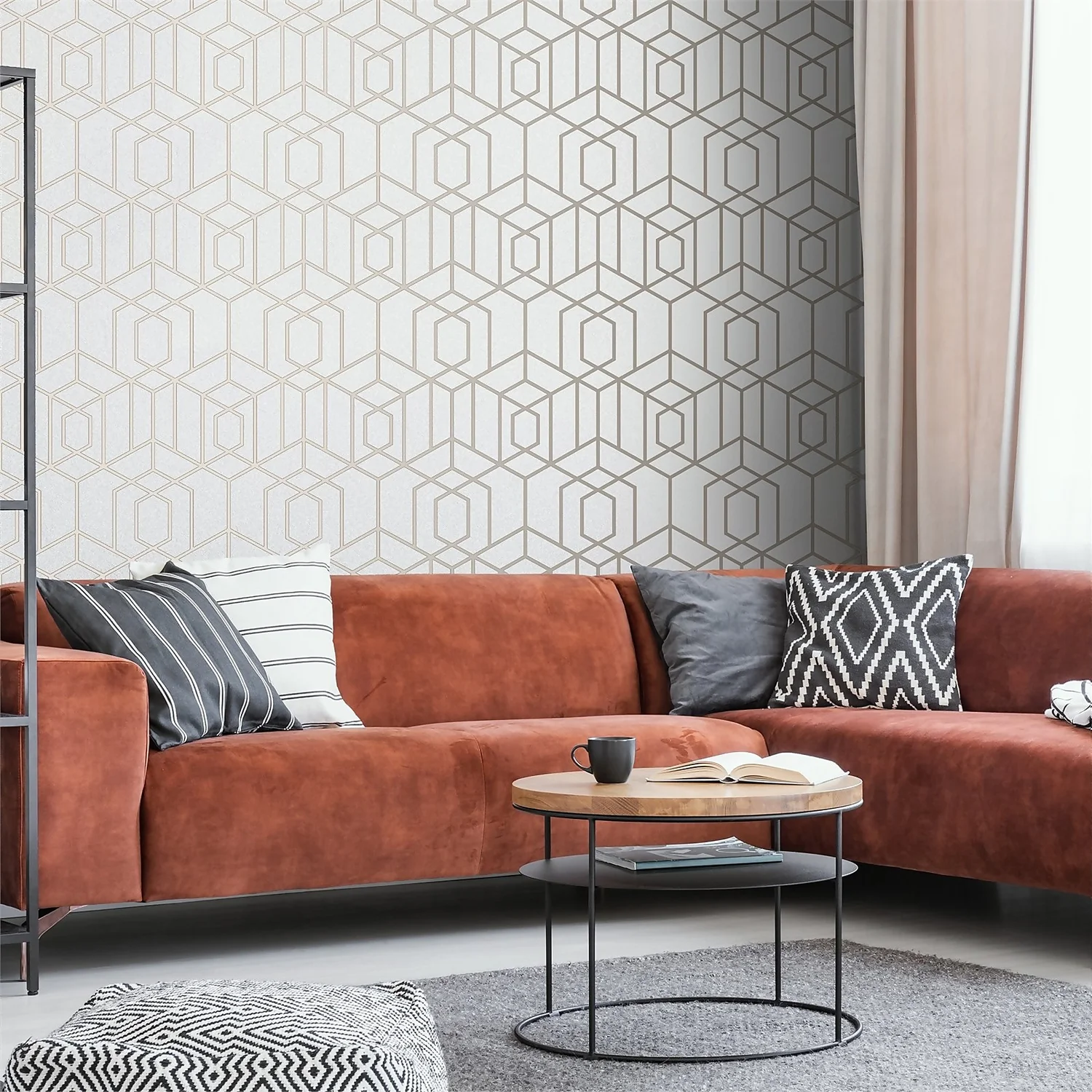 • Geometric,metallic finish giving your walls a fashionable finish