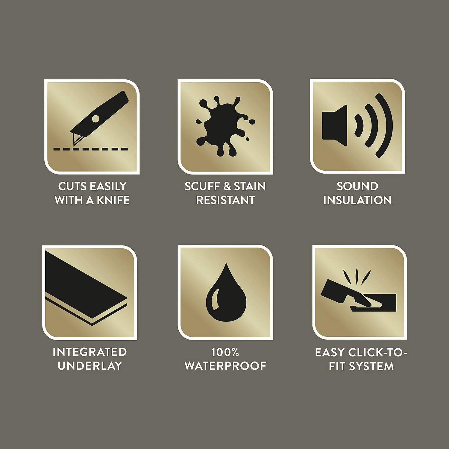 Kraus Aversley Oak is a waterproof herringbone pattern luxury vinyl tile with integral underlay and Rigid Core Technology. A rich brown base with a defined grain, sure to bring style to any space. Ideal for use in most living spaces. It cuts easily with a knife and provides an easy and clean flooring solution which is also resistant to scuffs and stains.