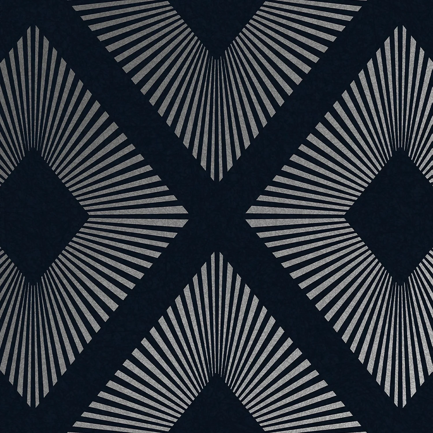 Add luxury and glamour to your walls with Deco Triangle Navy, this glamorous wallpaper design features a maxi geometric triangle in a statement silver metallic beautifully sat upon a deep navy background. Adding even more luxury, this statement design is printed on a fibrous paper which adds subtle texture whilst also being paste the wall meaning easy to hang.