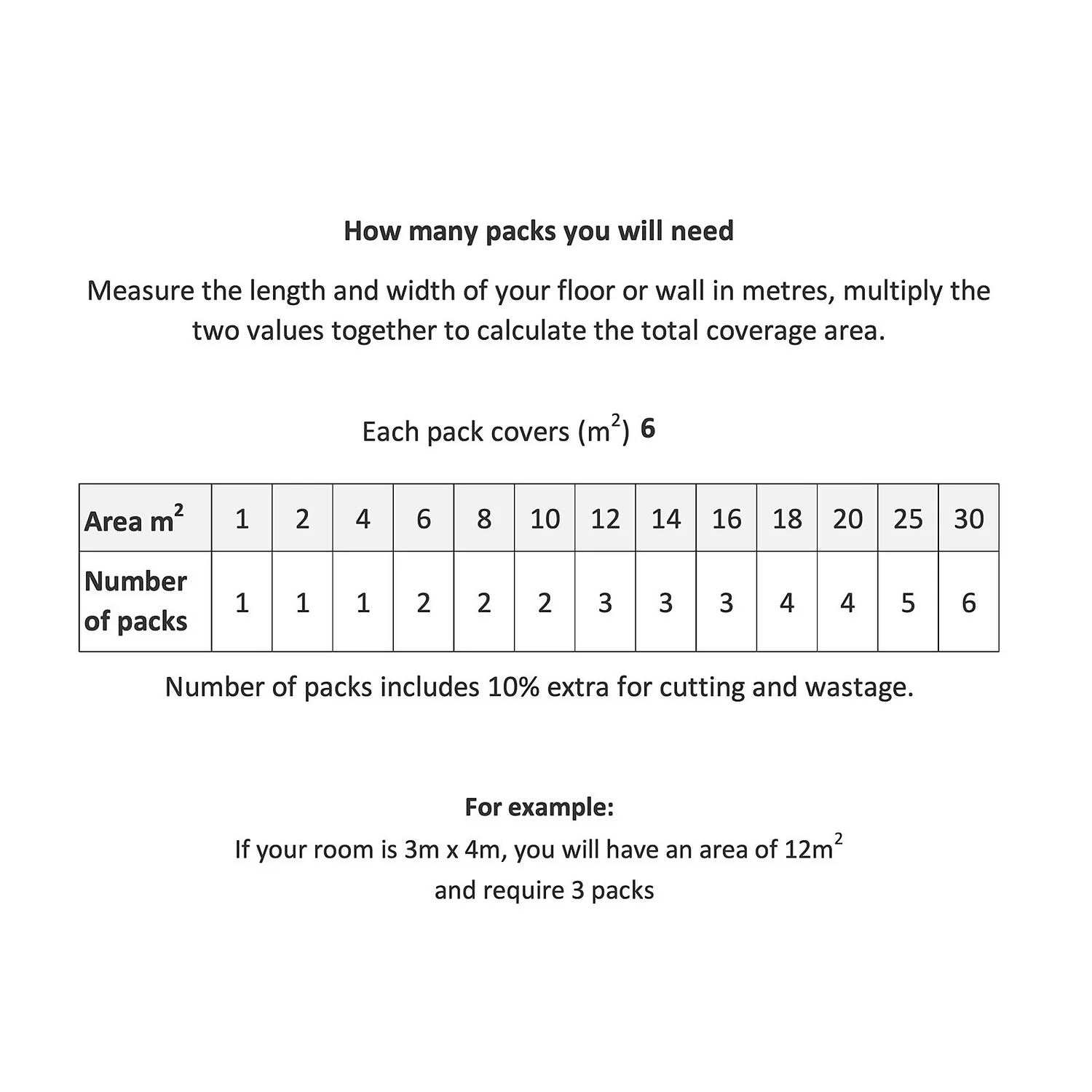 | Coverage Per Pack | 6sqm |