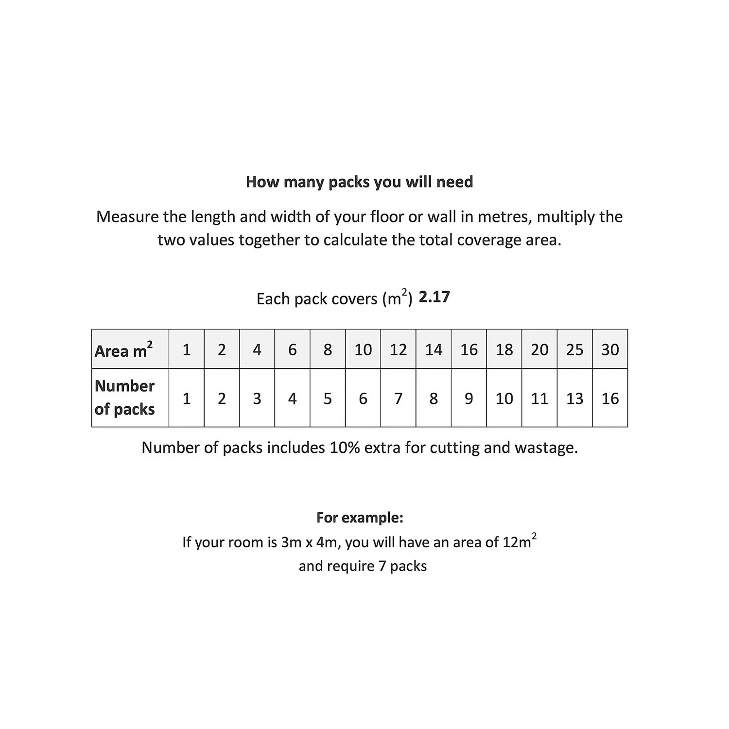 | Rooms Suitable For | Kitchen, bathroom, living areas, conservatory, high traffic areas |