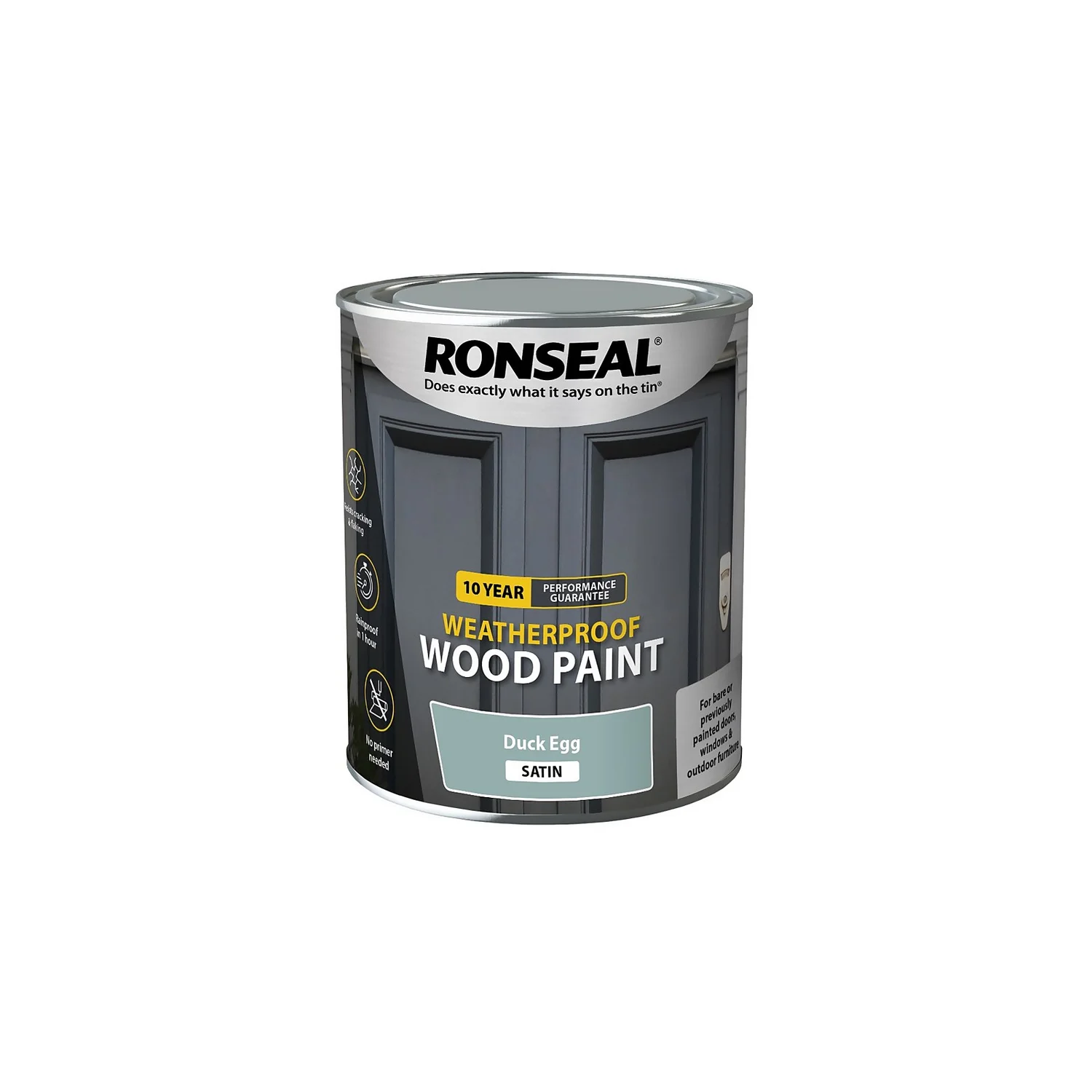 Ronseal 10 Year Weatherproof Wood Paint Duck Egg Satin – 750ml