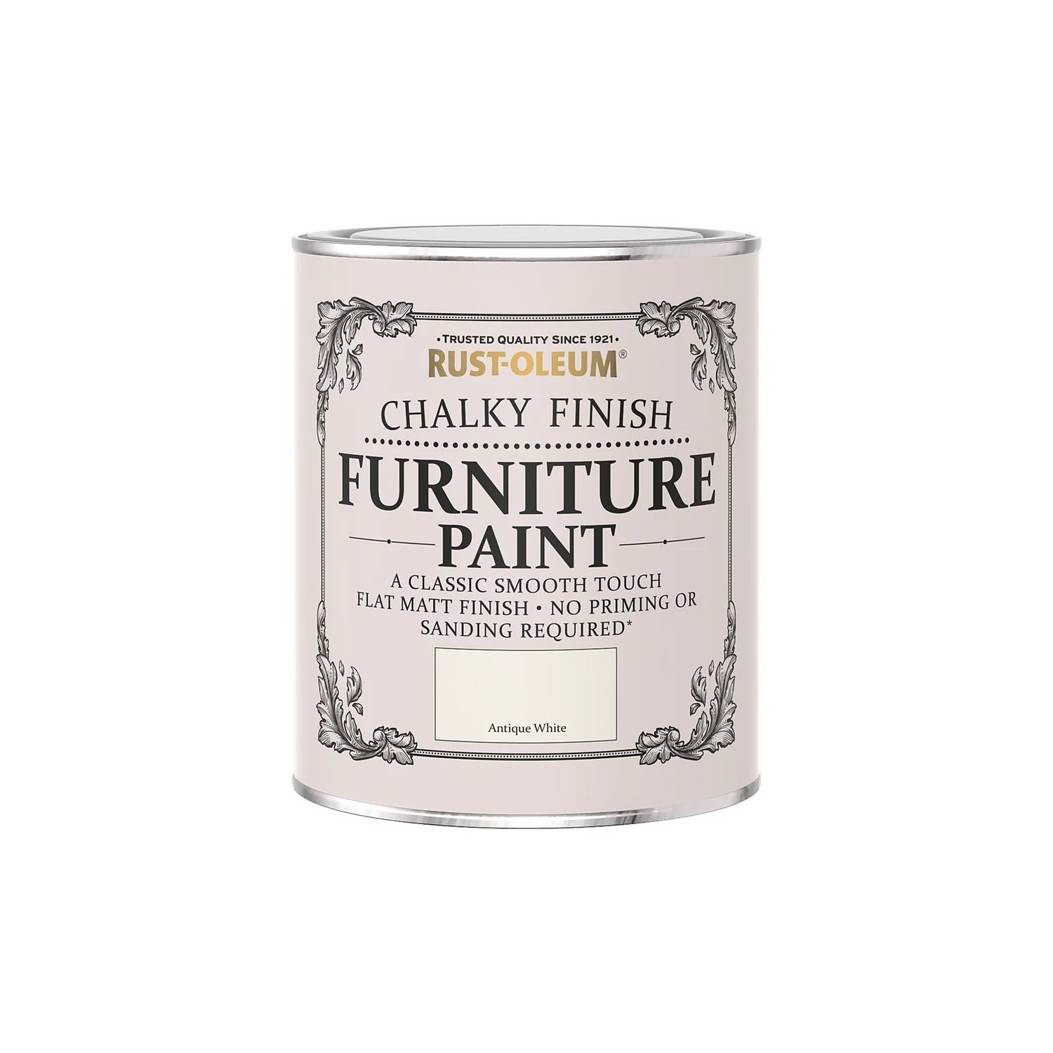 Renovate and transform furniture with Rust-Oleum Chalky Finish Furniture Paint. With a classic, smooth touch, flat matt finish, it brings a new lease of life to tired, worn-out objects. The paint can be used directly onto wood (bare or painted), brick, stone, plaster or any suitably primed rigid surface (metal, plastic etc.). Create a distressed look by applying two coats in contrasting colours then sanding/ scouring when dry. Protect the finish with either Rust-Oleum Furniture Finishing Wax or Rust-Oleum Furniture Lacquer. Application – Stir thoroughly prior to use. The product may be applied by brush or roller. If applying by brush, apply evenly following the grain of the wood. If rollering, use a short nap mohair roller. Coverage – Up to 14m2/litre per coat. Coverage may vary depending upon method and rate of application and porosity of surface. Drying Time – Touch dry in 1 hour. Handle after 4 hours. Apply a second coat after 4 hours if necessary. Full hardness after 4 hours.