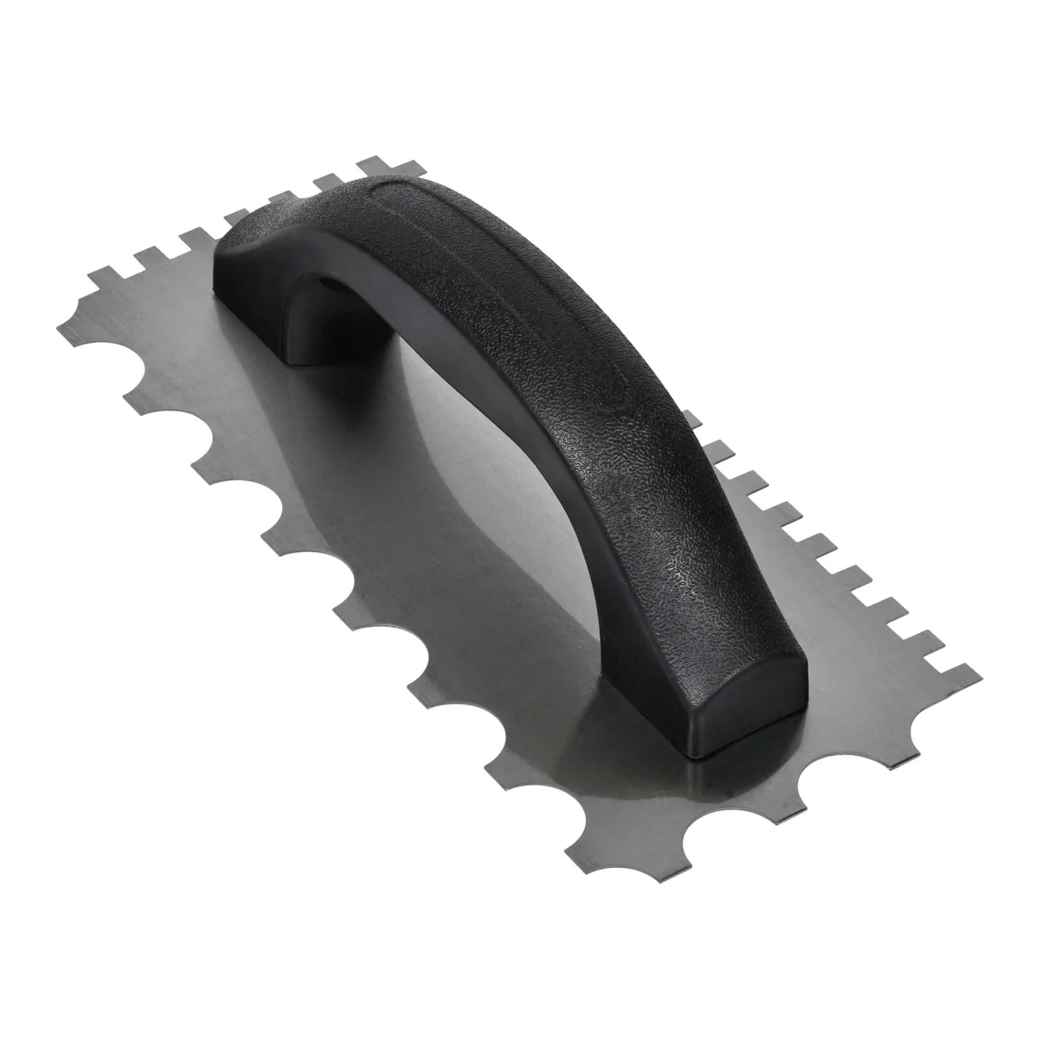 Wall and Floor Adhesive Trowel is a versatile tool that helps achieve thick adhesive base for tiles. It has 6mm notches for wall tile adhesive and 10 x 20mm notches for floor tile adhesive. The full, cold-rolled steel blade and high impact, black plastic handle makes this tool easy to use. Clean when finished and reuse for your next project.
